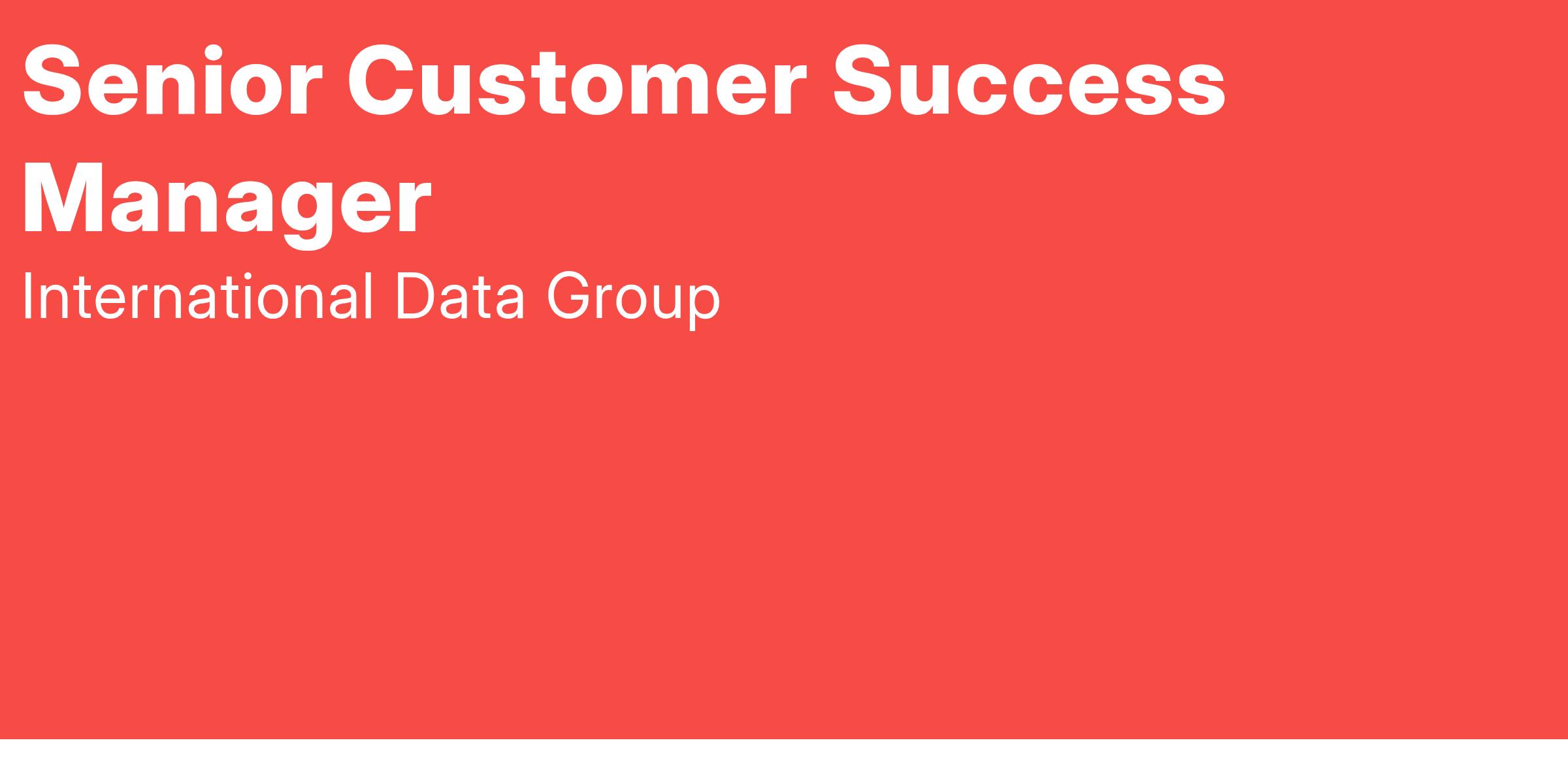 IDC is seeking a Senior Customer Success Manager, this role requires a dynamic, self-starter who is highly customer-centric and possesses strong leadership skills. In this position, the Customer Success Manager will work with IDC’s clients to proactively drive high levels of strategic engagement and customer value.
